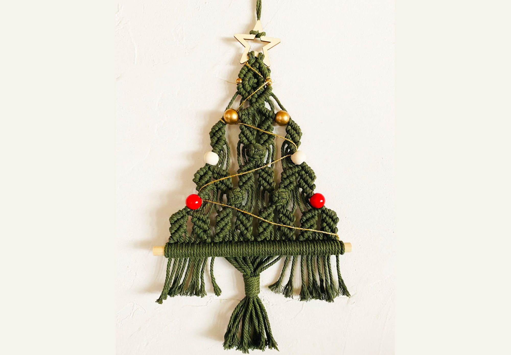 マクラメ編みで、クリスマスツリー型のオーナメント(壁掛け)を作りましょう!